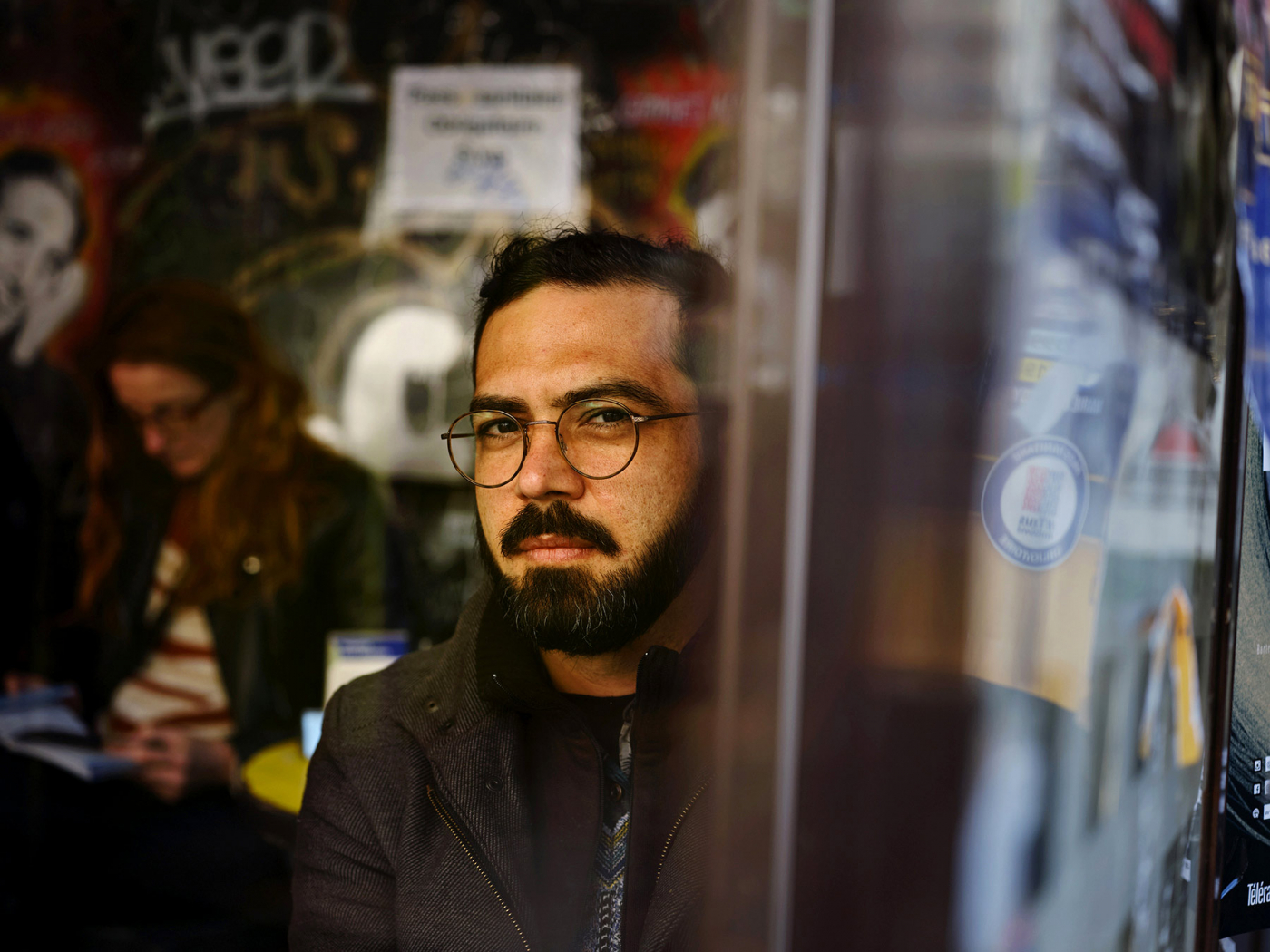 Peshawa Mahmood est peintre, illustrateur, calligraphe et performeur. Diplômé de l’Université de Souleimaniye, au sein de la section beaux-arts, il y en­seigne ensuite le dessin, la peinture, la mosaïque et l’histoire de l’art aux Beaux-Arts de Ranya. Il expose ses peintures notamment au musée Amna Suraka de Souleimaniye. Artiste militant, il travaille à des œuvres grandeur nature questionnant le système politique irakien et ses dérives. Lors de son exil, de l’Irak jusqu’à Marseille en passant par la Bulgarie, la Hongrie et la Serbie, Peshawa réinvente sa pratique artistique en privilégiant des dessins rapides réalisés sur des matériaux éphémères ou de récupération.